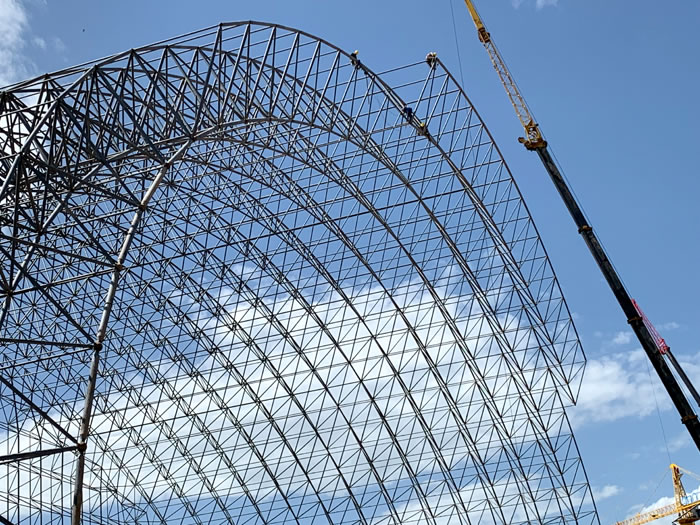 (2)网架加工前应对现场尺寸进行复测,确认无误后方可进行加工、安装;网架制作、运输、安装应遵守《空间网格结构技术规程》JGJ7-2010、《钢网架梅河口螺栓球节点》JG/T 10-2009、《钢网架梅河口螺栓球节点用高强度螺栓》 GB/T 16939-2016、《梅河口钢结构梅河口工程梅河口施工规范》 GB50755-2012、《梅河口钢结构梅河口工程施工质量验收标准》 GB50205-2020。